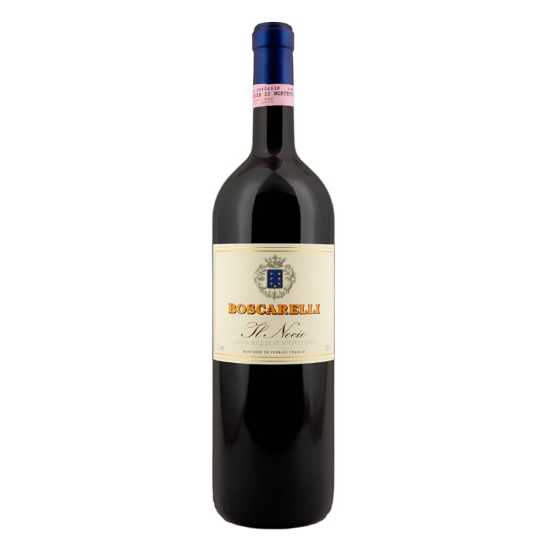 "Il Nocio" di Boscarelli è un monumento al Nobile di Montepulciano: un vino robusto e importante di grande corpo e carattere, vinificato e affinato per almeno 18 mesi in botte. Profumi di mirtilli, sottobosco, spezie dolci e balsamiche emergono da un profilo aromatico ampio e complesso. Un grande vino toscano da invecchiamento
