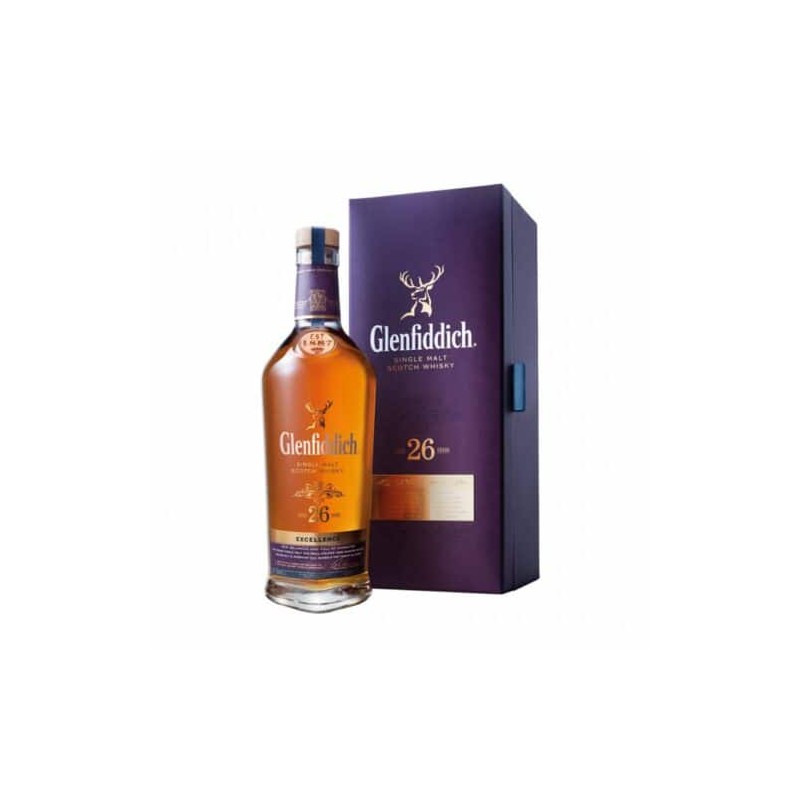 Ricco di note di vaniglia lussureggiante, rovere chiaro e spezie, questo Glenfiddich di 26 anni eccezionale è una delle espressioni più desiderabili. Maturato alla perfezione in botti Bourbon, tutto di questo Single Malt trasuda eccellenza; dalla scatola di presentazione viola regale con design a xilografia in rilievo al tradizionale tappo di quercia, nessun dettaglio è stato omesso.