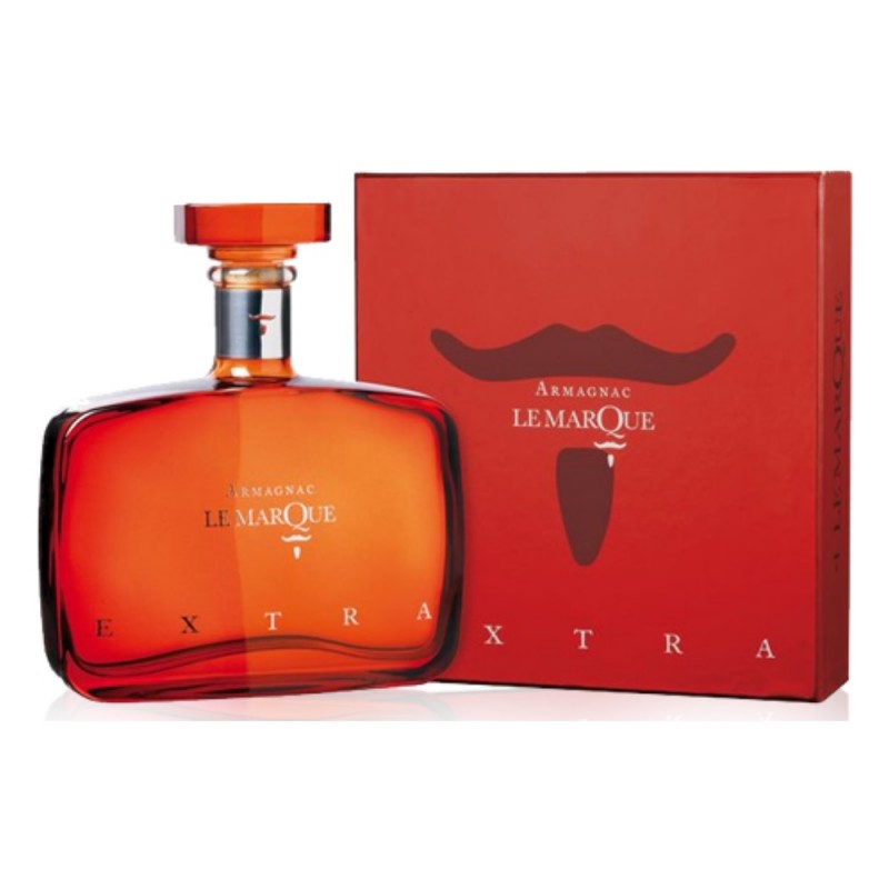 “Le Marque” distilla, invecchia e miscela i propri Armagnac. Ogni fase del processo di sviluppo è pensata ed eseguita scrupolosamente. Tutto è fatto per rivelare il pieno potenziale del territorio attraverso gli Armagnac che combinano autenticità e modernità. La dicitura “Extra” rappresenta la quintessenza delle miscele a marchio “Le Marque”. Molto complesso e molto espressivo. Al naso: noci fresche, prugne, liquirizia, frutta secca, caramello cotto. In bocca: eleganza, cacao amaro, mandorla tostata, vaniglia, liquirizia, prugna secca, scorza d’arancia.
