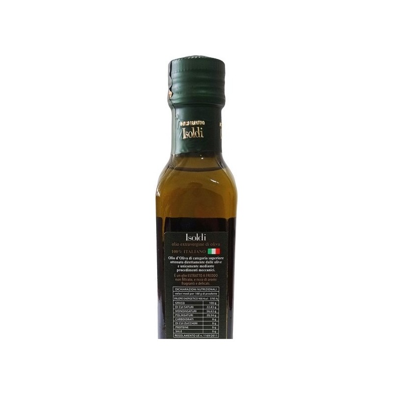 L’alto valore di polifenoli (antiossidanti) presenti in natura ne assicura una buona stabilità nel tempo garantendo un olio sempre fresco. Questo particolare olio dal profumo molto intenso e fruttato ha il pregio di avere una bassissima acidità ed una alta resistenza all’ossidazione, grazie alla eliminazione del nocciolo dal processo estrattivo. Ha un colore verde con riflessi dorati dal sapore di carciofo crudo intenso e persistente al palato con sfumatura di mela verde e retrogusto di mandorla dolce. Può essere utilizzato a crudo su insalate e verdure, ottimo anche sul pesce.