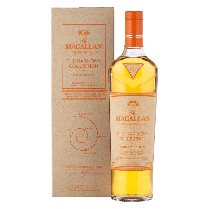 Il naso del Single Malt The Macallan Harmony Amber Meadow è ricco di sentori di arancia fresca e limone, primula selvatica, petricore, melone e campanule. Al palato ha note di limone, zucchero d'orzo, vaniglia cremosa, mandorle e rovere fresco. Il finale è dolce e persistente, molto profumato e cremoso .